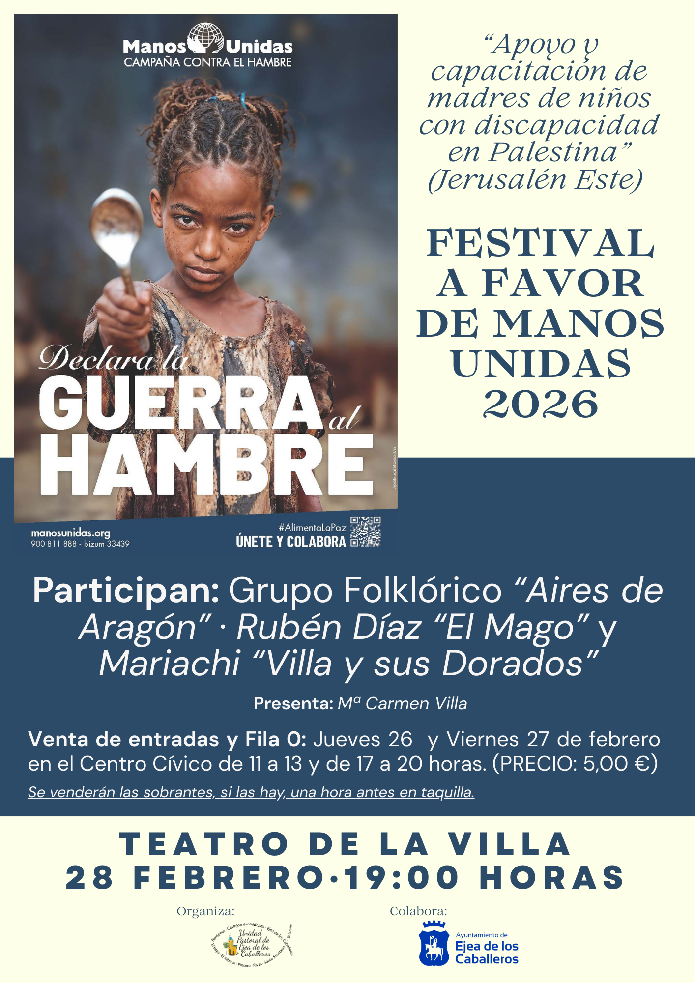 Festival solidario a favor de Manos Unidas febrero 28|7:00 pm - 8:30 pm Teatro de la Villa Plaza Virgen de la Oliva, Ejea de los Caballeros, Zaragoza, España Más información