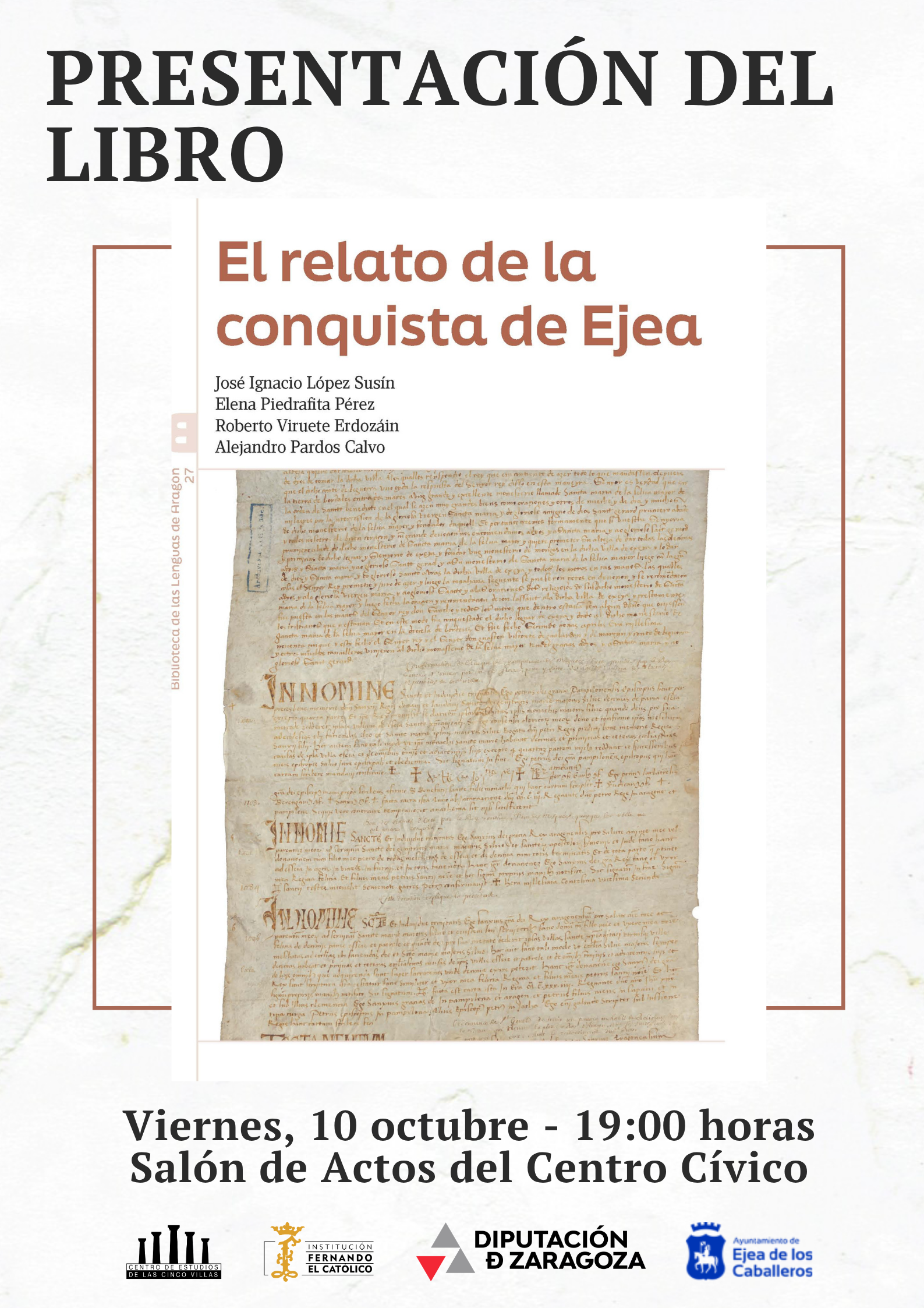 Centro Cívico Paseo Del Muro, 22 - 24, Ejea de los Caballeros, ZaragozaMás información: https://www.ejea.es/presentacion-del-libro-el-relato-de-la-conquista-de-ejea/