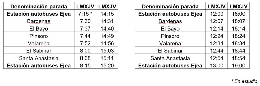 El Gobierno de Aragón también ha comunicado que las rutas de transporte escolar solo podrán ser utilizadas por escolares que se desplacen desde los Pueblos a Ejea, y viceversa.