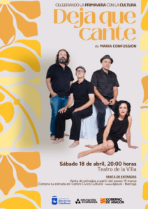 El programa CELEBRANDO LA PRIMAVERA CON LA CULTURA nos brinda la oportunidad de encontrarnos nuevamente con la música, en esta ocasión con la del grupo MARIA CONFUSSION que nos presentará las canciones de su último proyecto “DEJA QUE CANTE”. La cantante María Pérez, el pianiusta Faustino Cortés, el guitarrista Pepe Vázquez y el percusionista  José Luis Seguer “Fletes”  nos ofrecerán canciones “cuya semilla trajeron el viento y los sueños”, llenas de sensibilidad, compromiso y talento.